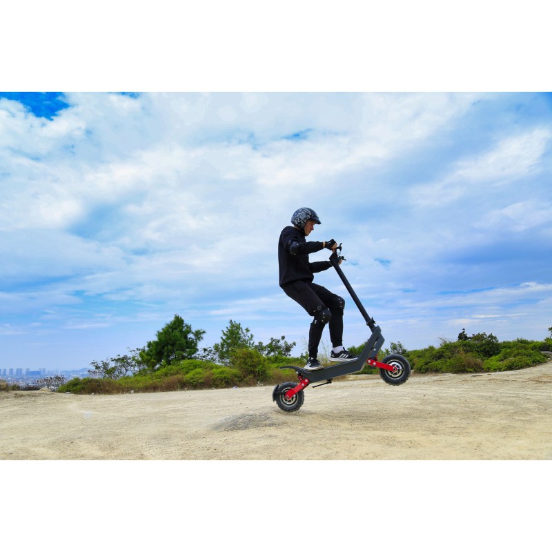 "SUV" offroad paspirtukas, super galingas, su dviem varikliais ir talpia baterija. Leiskitės į laisvalaikio nuotykius miško ar lauko takeliais ar laukais. Priekiniai ir galiniai amortizatoriai, 11' ratai. Įveiksite linksmai 50-70km, ir paspirtukas pargabens jus namo.