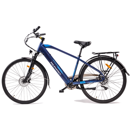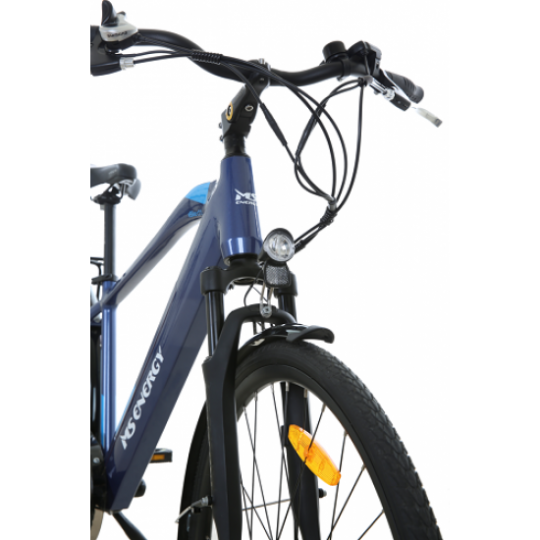 Miesto dviratis lengvu aliuminio rėmu. Siauros padangos suteikia lengvą riedėjimą, priekinė šakė su amortizacija garantuoja komfortą bet kokiu keliu, 6 Shimano pavaros ir kokybiškas VINKA el.variklis leis pasirinkti greitį ir nuvažiuoti iki 100km.